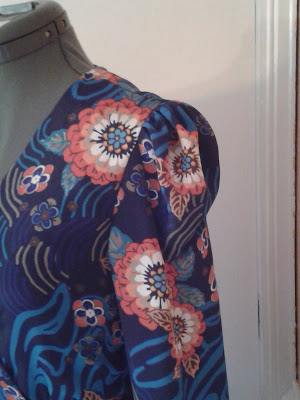 I didn't make a muslin because the sewing mojo was hibernating, which is unfortunate because this fabric is so lovely! I bought it in Adelaide, South Australia as my souvenir from a trip over New Year's. It has a beautiful drape and rich, saturated colors. I realized, though, that despite using a super thin needle and strengthening every seam, the fabric is perhaps too fragile for a wrap dress. So, it's going to be lots of *gentle* tying of the bodice around here, not to mention wearing camisoles in case said gentle ties decide to boycott.